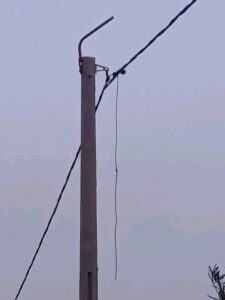 لا يقل وضع الإنارة العمومية سوءًا عن حالة الطريق. فالعديد من المصابيح معطلة، وبعضها فارغ تمامًا، بينما تم نزع البعض الآخر كليًا من مكانه، تاركة وراءها أسلاكًا كهربائية متدلية من الأعمدة. هذا الوضع لا يغرق الحي في ظلام دامس ليلاً فحسب، بل يشكل أيضًا خطرًا حقيقيًا يهدد أمن وسلامة المواطنين عامة، والأطفال خاصة، بسبب خطر الصعق الكهربائي، بالإضافة إلى تزايد احتمالية وقوع الحوادث والجرائم في ظل غياب الإضاءة الكافية.