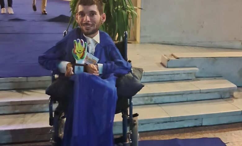 “كما سعدت بمنحي لقب نجم ذوي الإعاقة بالمغرب من طرف رئيسة المهرجان، الدكتورة سهير عبد القادر. أهدي هذا التتويج لمولاي صاحب الجلالة الملك محمد السادس نصره الله وأيده، الذي يولِي اهتماماً خاصاً بالثقافة والمبدعين من ذوي الاحتياجات الخاصة.”
