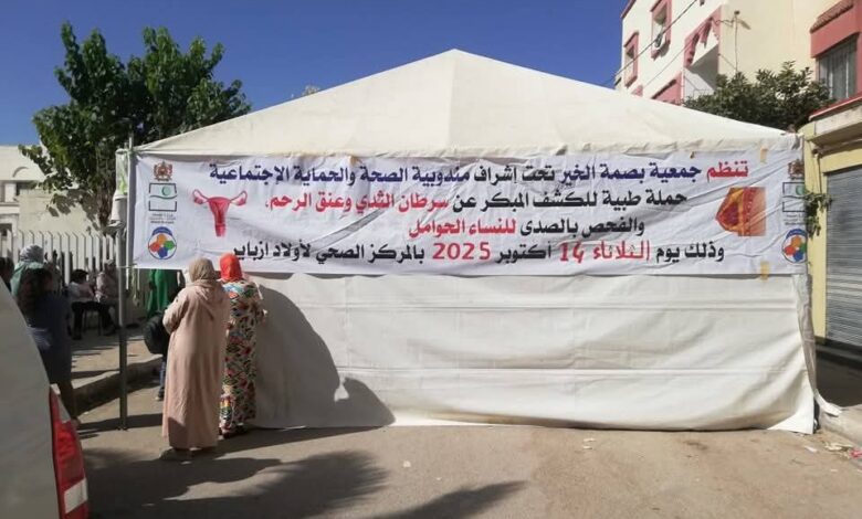 في إطار الحملة الوطنية للكشف المبكر عن سرطان الثدي وعنق الرحم، المنظمة تحت شعار “فحصك آمن ومطمئن… لا تترددي”، شهد المركز الصحي من المستوى الثاني بأولاد ازباير، يوم الثلاثاء 14 أكتوبر 2025، تنظيم حملة طبية وتوعوية متميزة أشرفت عليها جمعية بصمة الخير بشراكة مع مندوبية الصحة والحماية الاجتماعية وبتنسيق مع السلطات المحلية.