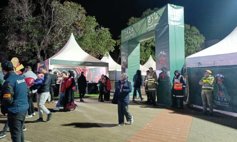 بمدينة تازة (فان زون تازة)، عاشت منطقة المشجعين بحديقة 20 غشت أجواءً استثنائية على إيقاع المواجهة القوية بين المنتخب المغربي ونظيره الزامبي، وسط أجواء احتفالية دافئة عكست شغف وحماس الجماهير التازية. وقد تزينت هذه الفضاءات بالكامل بألوان العلم الوطني، لتتحول إلى نقطة تجمع بارزة ولافتة خلال هذه التظاهرة القارية.