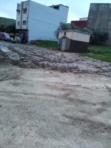عند التجول في أزقة الحي، يصعب تجاهل حجم الإهمال. الطرقات، إن صح تسميتها كذلك، عبارة عن مسالك ترابية مليئة بالحفر العميقة والتشققات التي تتحول إلى برك طينية موحلة مع أولى قطرات المطر، وتتطاير منها سحب من الغبار في الأيام الجافة. هذه الحالة لا تعرقل حركة السيارات فحسب، بل تجعل مجرد السير على الأقدام مغامرة محفوفة بالمخاطر، خاصة بالنسبة للأطفال وكبار السن.