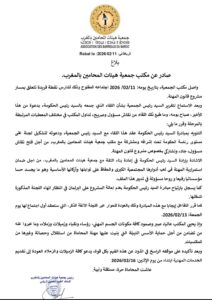 كما أشاد المكتب بما وصفه بإرادة حكومية لإعادة بناء جسور الثقة مع جمعية هيئات المحامين بالمغرب، بما يضمن استمرار المهنة في أداء أدوارها المجتمعية والحفاظ على ثوابتها الأساسية، معتبراً أن هذا التوجه يعكس حساً مؤسساتياً وروحاً مسؤولة في تدبير الملف.