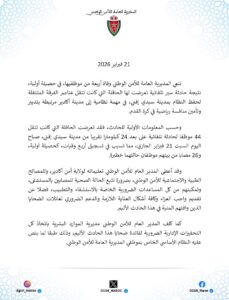 في بلاغ رسمي صادر يوم السبت 21 فبراير 2026، أعلنت المديرية العامة للأمن الوطني عن وفاة أربعة من موظفيها، في حصيلة أولية، إثر حادثة سير تلقائية خطيرة تعرضت لها حافلة كانت تقل عناصر الفرقة المتنقلة لحفظ النظام بمدينة سيدي إفني، أثناء توجههم في مهمة نظامية إلى مدينة أكادير لتأمين منافسة رياضية في كرة القدم.