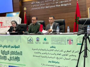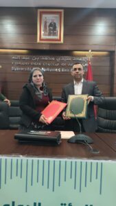 وقد نظم حفل التوقيع ضمن فعاليات المؤتمر الدولي الثاني في موضوع “المخاطر البيئية بالبلدان العربية: الإشكال، الإنعكاسات والتدبير” المنظم يومي 23 و 24 أبريل الجاري بالكلية متعددة التخصصات تازة، حيث وقع عن الطرف الأول الدكتور محمد الرفيق رئيس للمركز المغربي الدراسات القانونية والمجالية والتنموية وأستاذ التعليم العالي بالكلية متعددة التخصصات تازة، فيما مثلت الطرف الثاني الأستاذة الدكتورة ميادة عبد القادر عميدة كلية الإنسانيات بالجامعة المصرية الصينية، والأستاذة الدكتورة رحاب عمر محمد سالم عميدة كلية القانون.